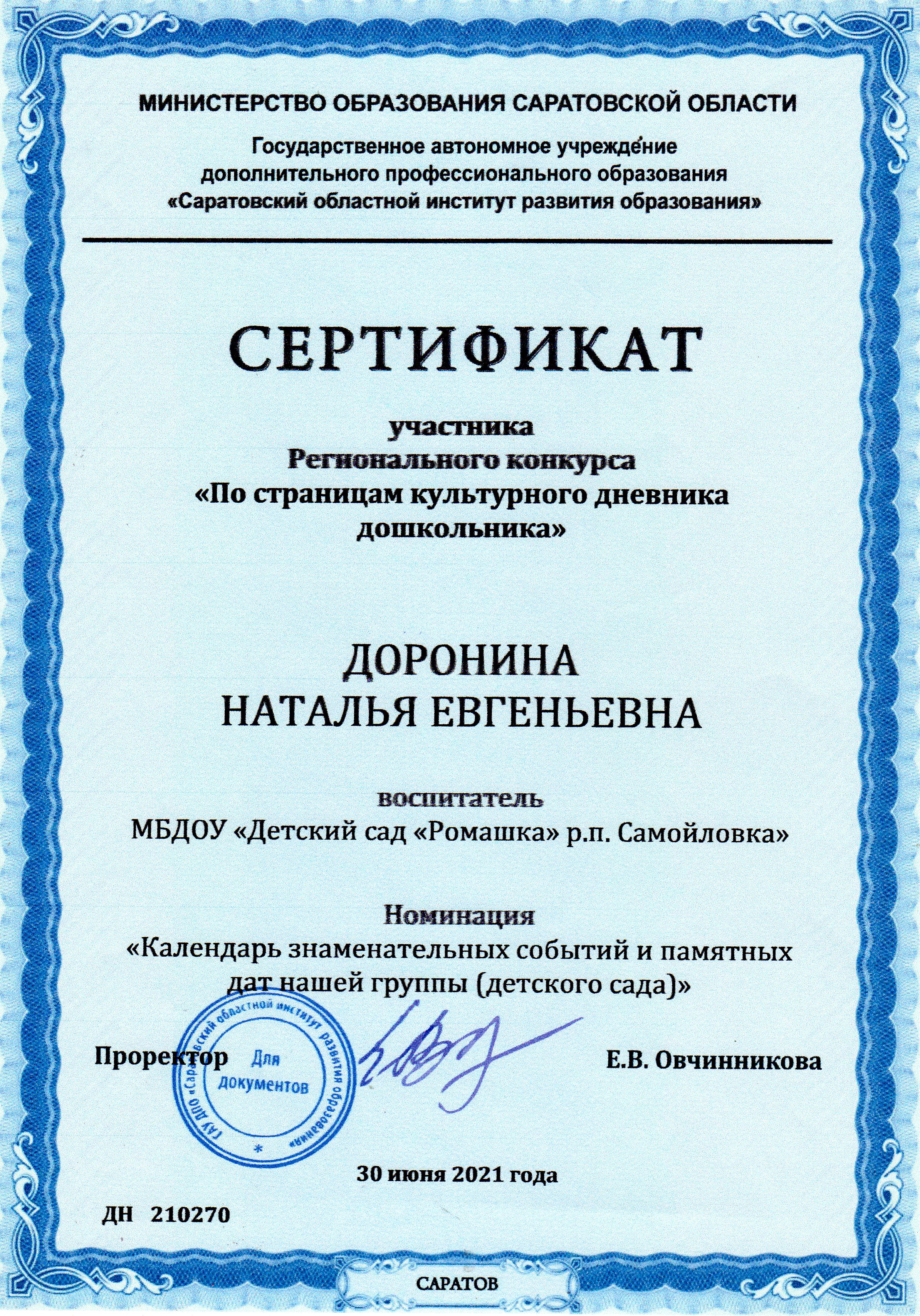 Доронина Наталья Евгеньевна-воспитатель высшей квалификационной категории